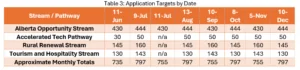 Effective June 11, 2024, AAIP has implemented new guidelines for the Alberta Opportunity Stream, Rural Renewal Stream, and Accelerated Tech Pathway. These guidelines are similar to those used in the Tourism and Hospitality Stream. The following table outlines the application acceptance dates and targets:
