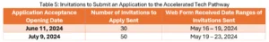 As of July 25, 2024, there are 446 web form submissions in the pool for the Accelerated Tech Pathway, received between May 23, 2024, and June 11, 2024. The following table lists the invitations to apply sent from this pool: